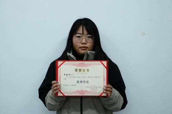 优秀学员代表:计算机科学与工程学院王英硕。她时刻牢记自己的职责,以高度的自律和进取精神。通过不懈努力,文化素养得以丰富,思想觉悟愈加高远,综合素质稳步提升。她也明确了自己的奋斗目标,积极为同学和老师们服务。