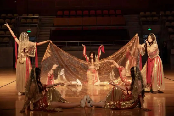 舞蹈复刻敦煌古韵,舞者着壁画华服、展飞天身姿,尽显千年文化底蕴。
