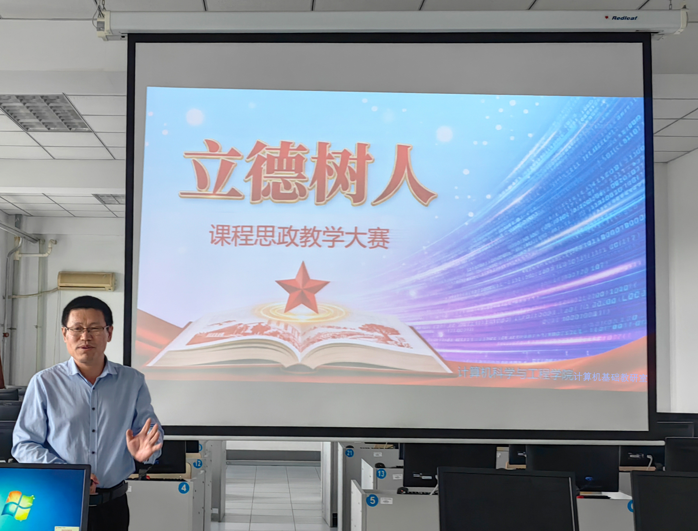 为深度践行高校立德树人根本使命,切实推动课程思政建设落地见效,进一步提升教师课程思政教学设计与实施能力,924日下午1:30,计算机科学与工程学院计算机基础教研室在J1-508顺利开展课程思政教学大赛预赛暨优秀案例遴选活动。本次活动由教研室主任牵头组织,教研室全体教师积极参与,学院裴院长现场观摩指导,为活动增添专业保障。
